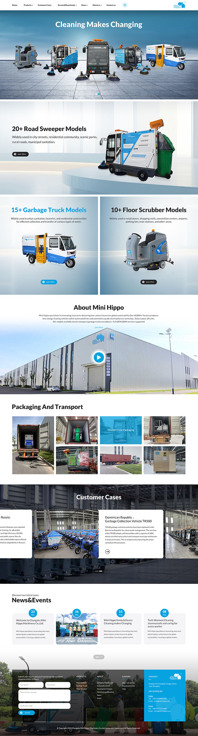 Mini Hippo specializes in innovating clean tech, delivering low-carbon futures for global sustainability. Focusing on global market demands, the company offers over 40 models of new energy cleaning vehicles, including road sweepers, floor scrubbers and garbage transfer trucks, which are widely used across diverse settings like streets, factories, warehouses, hospitals and airports.
